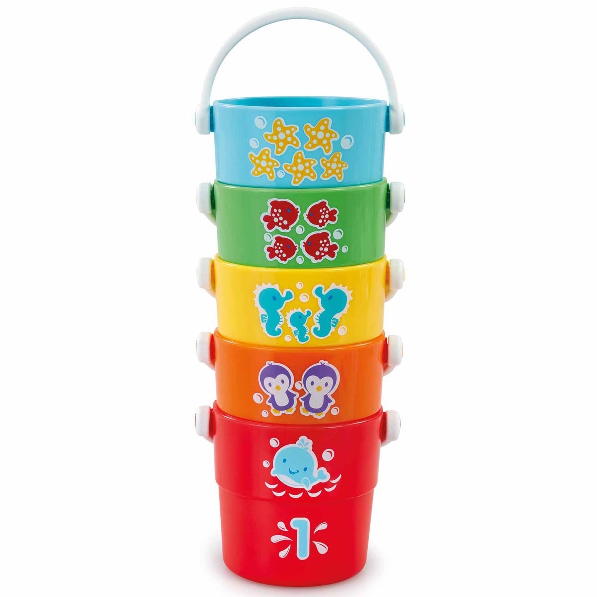Përdor këto kova për të mësuar fëmijën të numërojë nga 1 deri në 5, ose inkurajo të numërojë figurat me kafshë të detit me ngjyra. Secila kovë ka një dorezë të trashë që është perfekte për duart e vogla për t’u mbajtur lehtë.